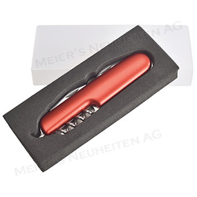 Bemerkungen: Multifunktionelles Taschenmesser mit vielen klassischen Tools. Neben Messer und Schere finden sich so nützliche Dinge wie Zapfenzieher und Flaschenöffner.