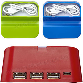 USB-Hub 3 Port mit Telefon- oder Tablethalter mit Kabelaufbewahrung